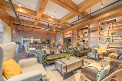 - 融合登记入住、吧台、闲暇休憩、商务洽谈等功能于一体,采用挑高设计,呈现极具空间感的简约风格。